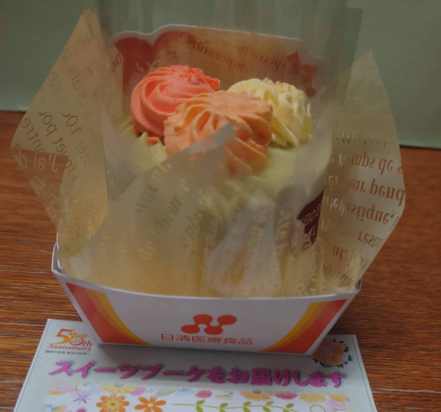 スイーツブーケ🍰 ちょっと前ですが、患者様の御食事(一般食)に創立50周年ケーキ🍰が添えられたそうです。 美味しそうですね。入院時の楽しみのひとつは食事の時間✨かもです。 栄養科も美味しく召し上がっていただけるように日々精進してまいります。 くるめ病院ホームページ委員会2022-10-12T16:40:59+09:002022年10月12日|通常|