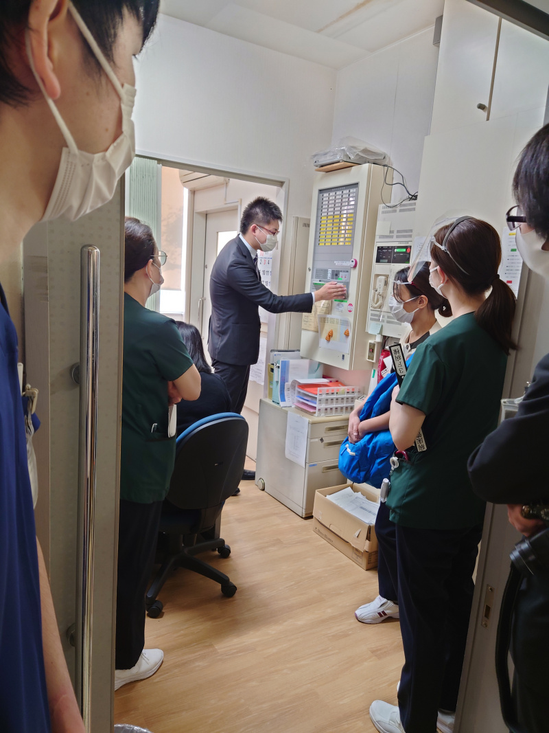 夜間想定避難訓練が行われました。 15時から、消火活動や通報、避難誘導等が行われました。 今回は、最後に誤報だった場合の処理を教えてもらいました。 空気が乾燥しています。火の用心ですね。 くるめ病院ホームページ委員会2022-11-16T15:58:56+09:002022年11月16日|通常|
