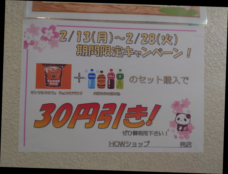 売店では30円値引きキャンペーン中です。 くるめ病院の2階に売店がございます。 2月末まで、チョコクロラスク+お好きな飲み物で30円引きとなっております。 ぜひこの機会にお買い求めください。(^^)/ くるめ病院ホームページ委員会2023-02-17T12:44:36+09:002023年2月17日|通常|