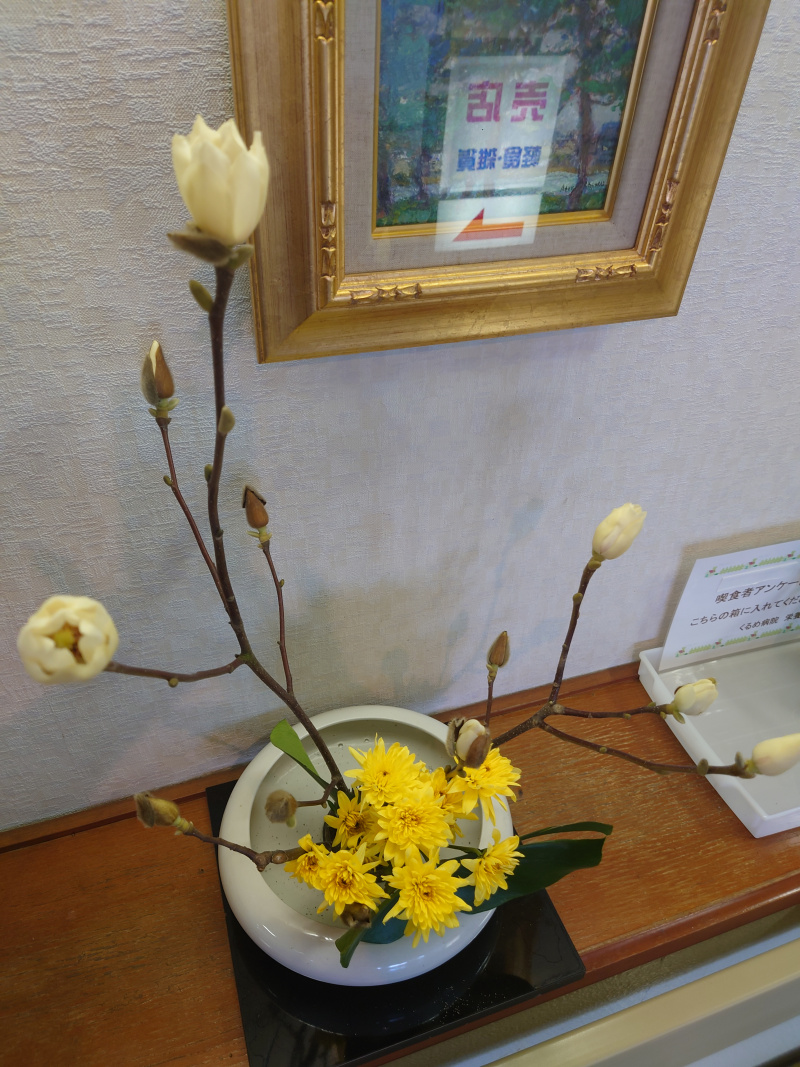 ハクモクレン 患者様食堂入口の生け花の花は、ハクモクレンのようです。 銀色っぽい毛におおわれたつぼみが開くと白いたまごのような花が咲きます。 春が来るのが待ち遠しいです。寒いことに飽きましたね。(^^♪ くるめ病院ホームページ委員会2023-02-21T15:03:28+09:002023年2月21日|通常|
