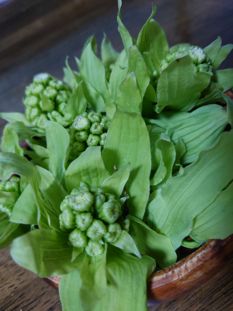 ふきのとう 春の山菜は、ほろ苦いのが美味しくて、体に効くような気がします。 ふきのとうは、天ぷらやアヒージョ、パスタなどにすると美味しいようです。 ふきのとう(花芽)は、「ふき(葉)」とは、別に伸びてくるので、全部採っても大丈夫です。 くるめ病院ホームページ委員会2023-02-24T16:52:32+09:002023年2月24日|通常|