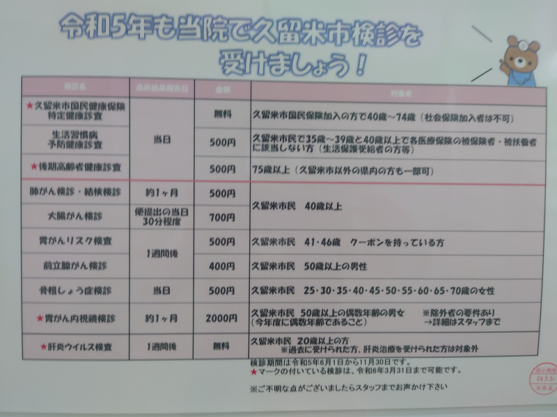 胃カメラ、偶数年齢2000円!! 久留米市民で50才以上の偶数年齢の男女は、2000円で胃カメラ検査を受けることができます。 早期発見早期治療が大事です。 8月10日以降でしたら、お電話でご予約できます。(^^)/ くるめ病院ホームページ委員会2023-08-08T15:56:33+09:002023年8月8日|通常|